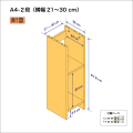 ■A4サイズの本や書類ファイルなどを収納するための二段棚ユニットです。 ■組み立て済み完成品です。 ■棚は全て固定棚です。 ■他に、棚一段タイプもあります。組み合わせて三段、四段、五段と、お好きな段数のA4本棚が作れます。 ■底部の奥行が26cmのベースユニット(例えば文庫本棚用ベースユニットなど)を本品(A4本棚)の上に接続することができます(右下図参照)。それにより、本品の上に別の奥行の棚を組むことができます。 |