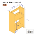 ■A4サイズの本や書類ファイルなどを収納するための二段棚ユニットです。 ■組み立て済み完成品です。 ■棚は全て固定棚です。 ■他に、棚一段タイプもあります。組み合わせて三段、四段、五段と、お好きな段数のA4本棚が作れます。 ■底部の奥行が26cmのベースユニット(例えば文庫本棚用ベースユニットなど)を本品(A4本棚)の上に接続することができます(右下図参照)。それにより、本品の上に別の奥行の棚を組むことができます。 |