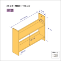 ■A5サイズの本を収納するための二段棚ユニットです。 ■組み立て完成品です。 ■他に、棚一段タイプもあります。組み合わせて三段、四段、五段と、お好きな段数のA5本棚が作れます。(右下図) ■棚は全て固定棚で、棚間隔(有効高)は約23cmです。 オプションとして、棚ユニットを手前に倒れにくくするベースユニット(底部奥行26cm)、および、天板ユニットが用意されています(右上図参照)。ベースユニットは一段棚として数えて下さい。 |