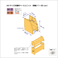 ベースユニットは、本棚やラック本体の底部に取り付けることで棚全体を手前に倒れにくくし、より安定化するための製品です。 ベースユニットは、卓上本棚や上置き本棚など、1段の棚として、そのままお使い頂くこともできます。 ■本品は上部奥行18cm、底部奥行26cm、横幅11~20cmのベースユニットです。 ■本棚・ラック本体の奥行が18cmの製品に取り付けて使用できます。 A5サイズ用本棚、CDラック、DVDラックに共通のベースユニットです。棚ユニットに組み込んだ場合の棚間の有効高はA5サイズが収まる23cmです。 ■巾木を避けるための欠き込み加工が施してあります。 ■ベースユニットの下側にA4用本棚を接続することができます(右下図参照)。 ■本棚・ラックへの取り付けの際に必要となる木ダボや連結ボルトなどが付属します。 |
