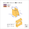 ベースユニットは、本棚やラック本体の底部に取り付けることで棚全体を手前に倒れにくくし、より安定化するための製品です。 ベースユニットは、卓上本棚や上置き本棚など、1段の棚として、そのままお使い頂くこともできます。 ■本品は上部奥行18cm、底部奥行26cm、横幅11~20cmのベースユニットです。 ■本棚・ラック本体の奥行が18cmの製品に取り付けて使用できます。 A5サイズ用本棚、CDラック、DVDラックに共通のベースユニットです。棚ユニットに組み込んだ場合の棚間の有効高はA5サイズが収まる23cmです。 ■巾木を避けるための欠き込み加工が施してあります。 ■ベースユニットの下側にA4用本棚を接続することができます(右下図参照)。 ■本棚・ラックへの取り付けの際に必要となる木ダボや連結ボルトなどが付属します。 |