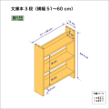 ■文庫本サイズの本を収納するための三段棚ユニットです。 ■組み立て完成品です。 ■他に、棚二段タイプもあります。組み合わせて四段、五段、六段と、お好きな段数の文庫本棚が作れます。(右下図) ■棚は全て固定棚で、棚間隔(有効高)は約16 cmです。 オプションとして、棚ユニットを前方に倒れにくくするためのベースユニット(奥行26cm)、および、天板ユニットが用意されています(右上図参照)。ベースユニットは一段棚として数えて下さい。 |