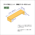 ■奥行14.3cm、横幅51.6~60.6cmの天板ユニットです。 ■本棚・ラック本体の奥行が14 cmの製品に取り付けて使用します。 ■本棚・ラックへの取り付けの際に必要となる木ダボや連結ボルトなどは本棚・ラック本体に付属のものをご使用下さい。 |