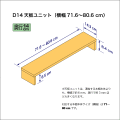 ■奥行14.3cm、横幅71.6~80.6cmの天板ユニットです。 ■本棚・ラック本体の奥行が14 cmの製品に取り付けて使用します。 ■本棚・ラックへの取り付けの際に必要となる木ダボや連結ボルトなどは本棚・ラック本体に付属のものをご使用下さい。 |