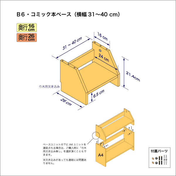 ■本棚・ラック本体の奥行が16cmのB6判コミック用本棚に取り付けて使用できます。